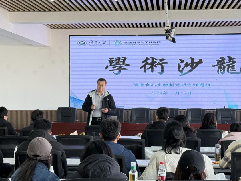 2024年11月29日,食品科学与工程学院健康食品生物制造研究团队“学术沙龙”活动在学院512学术报告厅成功举办。此次“学术沙龙”活动旨在通过组内师生分享最近的研究成果、交流研究经验和方法、探讨学术发展趋势,以激发研究生的创新灵感,为团队师生成长和学术发展注入新的活力,助力他们在学术道路上迈出更加坚实的步伐。团队教师和研究生、本科生30余人参与活动。