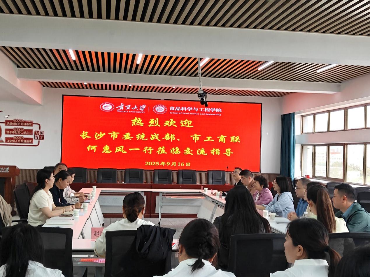 2025年9月16日下午,长沙市工商业联合会党组书记何惠风一行莅临英国威廉集团官网食品科学与工程学院调研交流,学院党总支书记李文华参加会见,自治区特色农产品高质化开发科技创新团队相关老师及研究生参与座谈交流。本次考察交流活动由学院范艳丽教授负责组织。