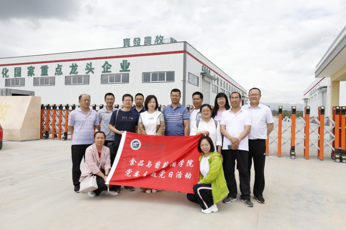 食品科学系党支部张惠玲教授调研服务中指出:企业的发展离不开科技与人才支撑,学校人才实践能力培养离不开企业支持,学校和企业应进一步深化校企合作,增大产教融合,实现共赢,广大青年教师应深入了解国情,以实际行动厚植爱国主义情怀,为决胜脱贫攻坚和全面建成小康社会贡献智慧和力量。企业领导也充分肯定了近年来食品科学专业毕业生的能力和在工作中的出色表现,希望能有更多的优秀毕业生到企业发展,并表示企业会加强与学校合作,充分利用科技手段助力企业发展,解决更多的社会就业问题,带动区域农民共同脱贫致富,校企联合共筑伟大中国梦。