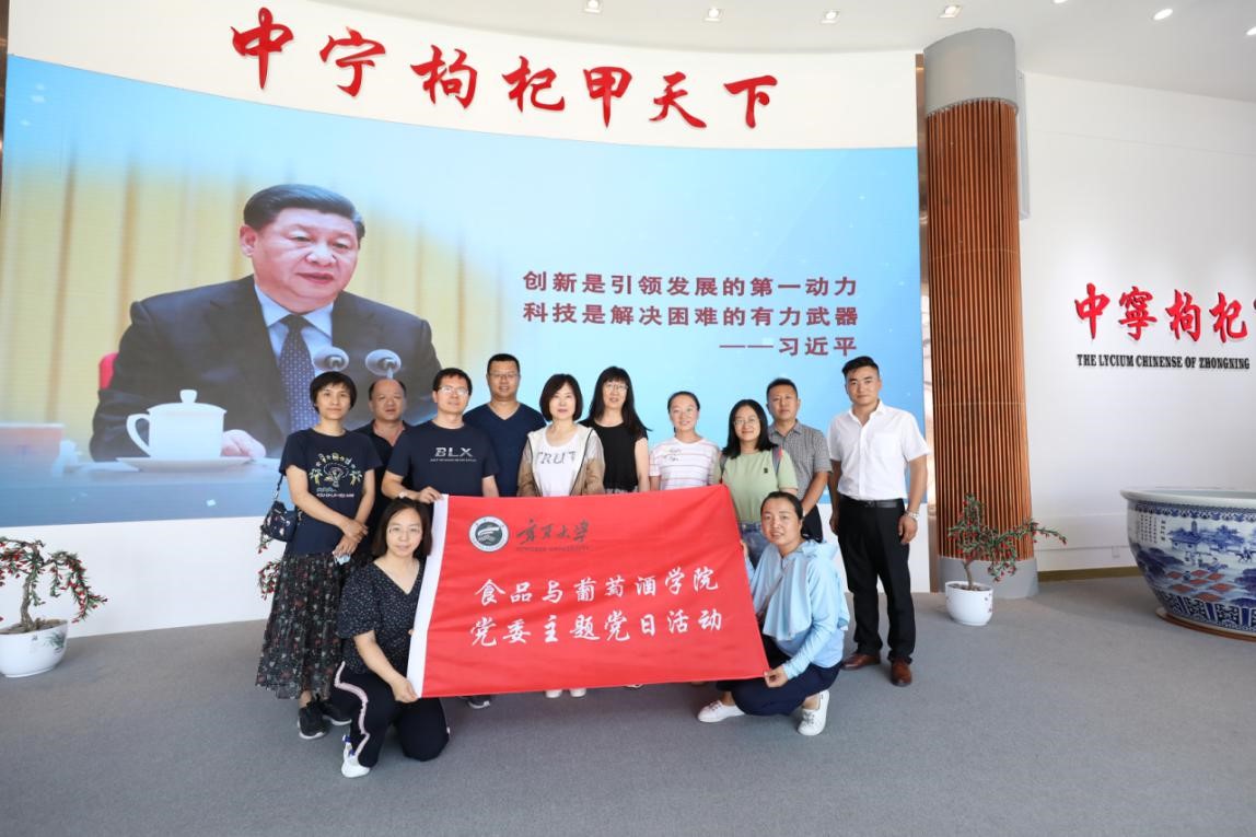 盛夏时节,英国威廉集团官网食品与葡萄酒学院党委于2020年7月28日至31日远赴中卫、同心、固原多地,深入宁夏中宁枸杞产业创新研究院、宁夏华宝枸杞产业有限公司、宁夏红枸杞产业有限公司、宁夏五谷丰生物科技发展有限公司、宁夏黄土地农业食品有限公司、宁夏尚农生物科技发展有限公司、宁夏兴宇绿色粗粮加工有限公司等18家食品企业开展科技服务与调研活动,详细考察枸杞原浆及生物发酵制品、冷榨胡麻油、牛肉精深加工、纯粮五谷香醋等数十个食品生产车间,支部党员用专业知识现场为企业解决生产技术难题,并就企业发展现状和产品存在问题进行面对面交流,以实际行动践行“不忘初心,牢记使命”的党性宗旨,深入企业协同促进产学研发展。