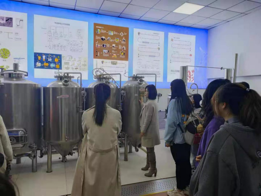 在食品机械办公室的参观过程中,新生全面了解学院当前的创新实验成果,通过观看枸杞加工和冷鲜的实验视频,进一步对食品加工实验增强了解。有趣生动的研发过程和实验产品充分激发了学生们对食品科学技术的强烈兴趣。参观食品生物制造中式车间时,通过张惠玲教授对各种品种的葡萄酒的口味和组成成分进行了详细分析,同学们进一步感受到自己所学专业在“观、嗅、尝”的多彩学科魅力。