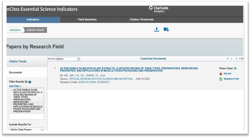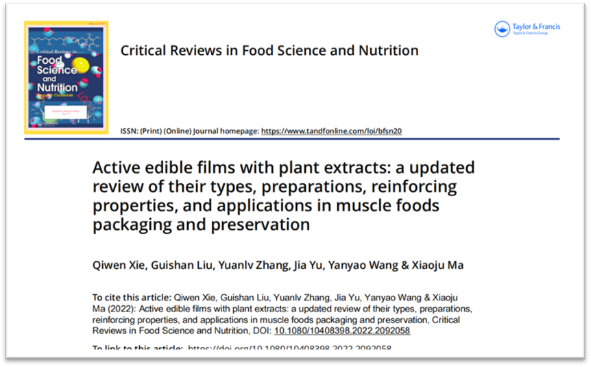 2023年9月15日晚,科睿唯安官方发布了最新的ESI高被引阈值。英国威廉集团官网食品科学与工程学院2021届硕士研究生谢启文(第一作者)、刘贵珊教授(通讯作者)于2022年6月在食品国际期刊Critical Reviews in Food Science and Nutrition(Q1,IF: 11.208)发表题为“Active edible films with plant extracts: A updated review of their types, preparations, reinforcing properties, and applications in muscle foods packaging and preservation”的综述性论文,同时入选农业领域(Agricultural Sciences)ESI高被引论文(前1%)和ESI热点论文(前0.1%)。该项工作得到 2022年度银川市科技创新专项(农业农村领域)项目资金支持。