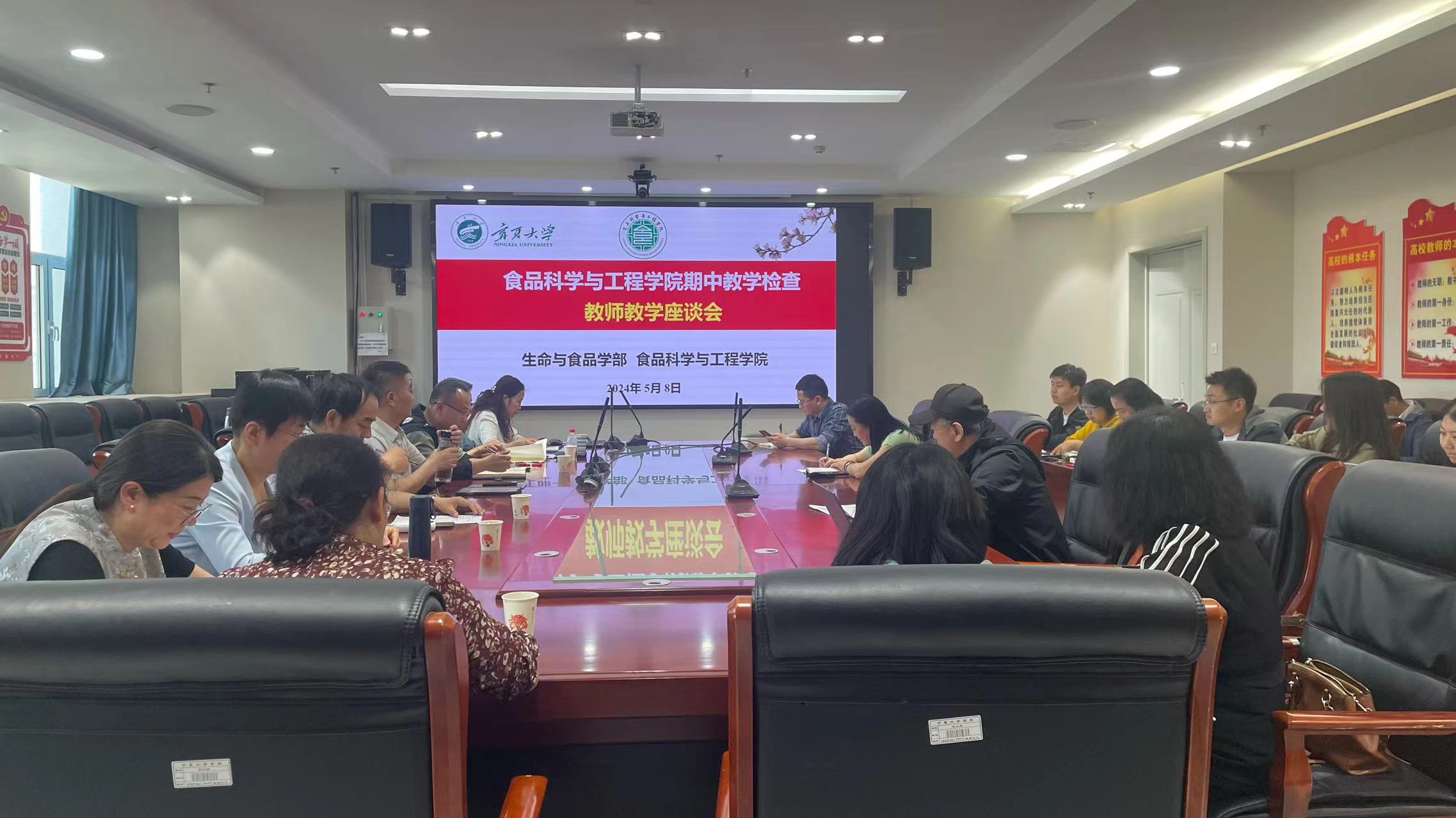 2024年5月8日,按照英国威廉集团官网《关于进行2023-2024学年春季学期期中教学检查的通知》要求,食品科学与工程学院召开教师教学座谈及督导检查意见反馈会,会议由生命与食品学部徐金瑞副部长主持,学部教学办主任郭少宏、学部督导及食品学院教师参加了座谈交流。