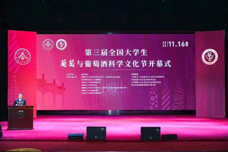 2025年11月15-16日,第三届全国大学生葡萄与葡萄酒科学文化节在华南农业大学成功举办。本届盛会以“中国风土、中国味道、中国文化”为核心主题,聚焦学科竞技、产业交流与文化传播,搭建了全国葡萄与葡萄酒行业人才培养、学术交流与产业对接的高端平台,我院师生积极参与各项活动,凭借专业实力斩获荣誉,充分展现学科育人成效与师生风采。