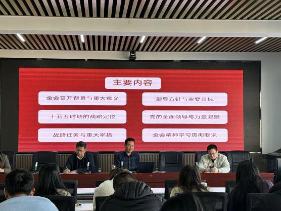 会议最后,李书记主持开展集体政治学习,带领全体教职工系统学习党的二十届四中全会精神。他从全会召开的时代背景和重大意义入手,深入解读了全会确立的指导方针和主要目标,重点阐释了“十五五”时期在推进中国式现代化进程中的战略定位和使命任务。李书记强调,要坚持党的全面领导,进一步凝聚思想共识和奋进力量,准确把握全会提出的战略任务和重大举措。他要求,全体教职工要把学习贯彻全会精神作为当前和今后一个时期的重要政治任务,与学院改革发展和年度重点工作紧密结合,切实将学习成果转化为推动学院高质量发展的实际成效。
