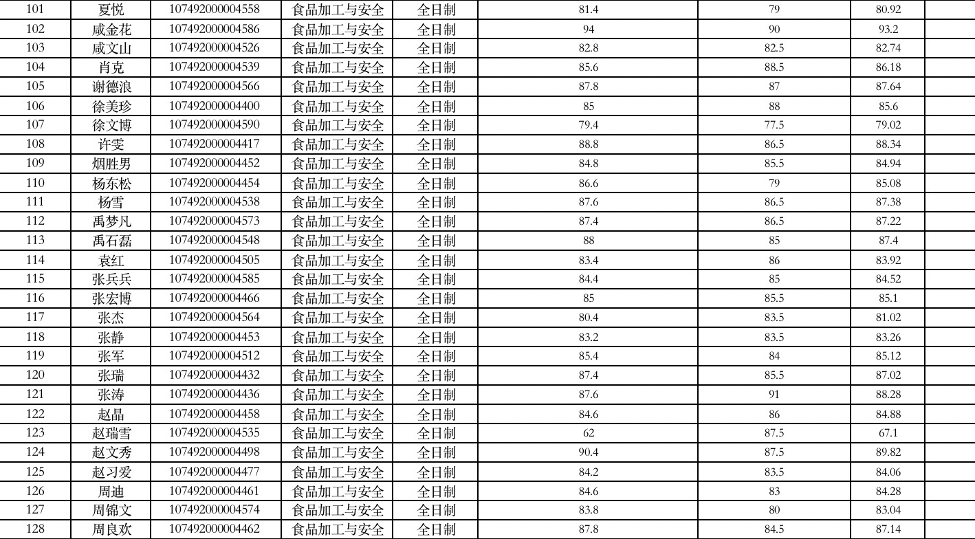 食品与葡萄酒学院2022年硕士研究生复试成绩