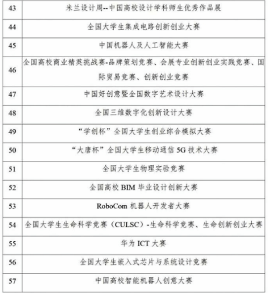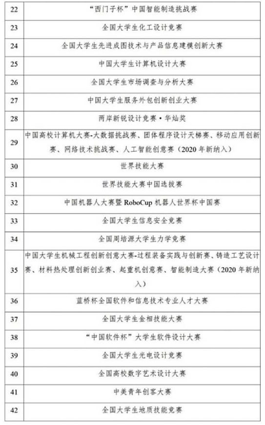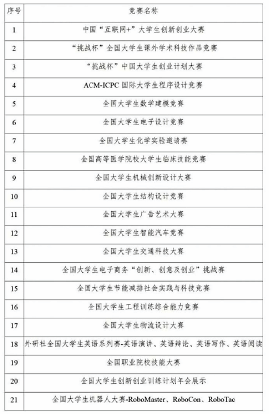 附件二:全国普通高校大学生竞赛排行榜