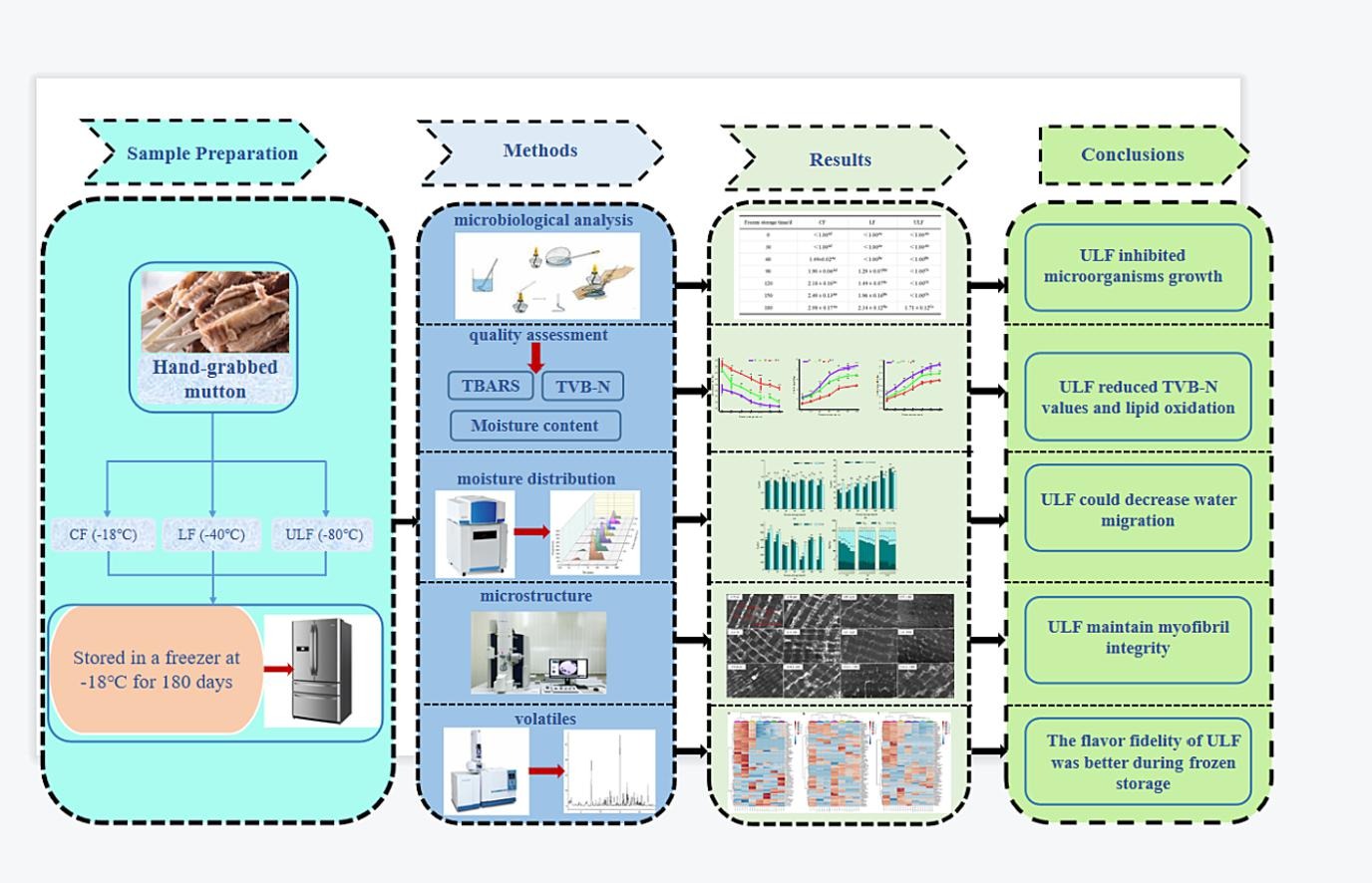 原文链接:The impact of freezing methods on the quality, moisture distribution, microstructure, and flavor profile of hand-grabbed mutton during long-term frozen storage - ScienceDirect